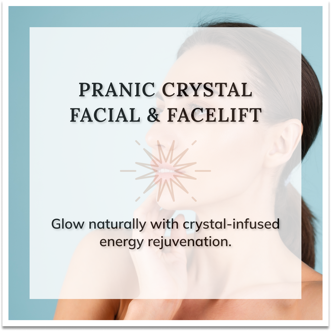 A gentle crystal healing session to fresh your face, reduce fine lines, lighten dark circles, and rejuvenate your glow. It enhances youthfulness, clears dullness, and uplifts both your skin andspirit.